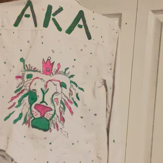Hand painted lion on back to represent the strength, courage and resilience of the AKA WOMAN!