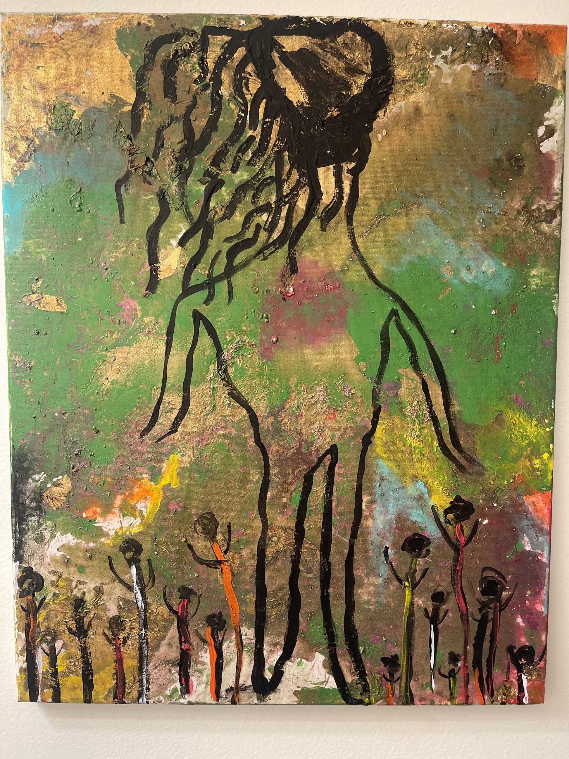 We all have someone that we look up to someone that we would like to mimic this painting represents that God is the one that we want to represent trust so he is bigger than all of us and loves all of us